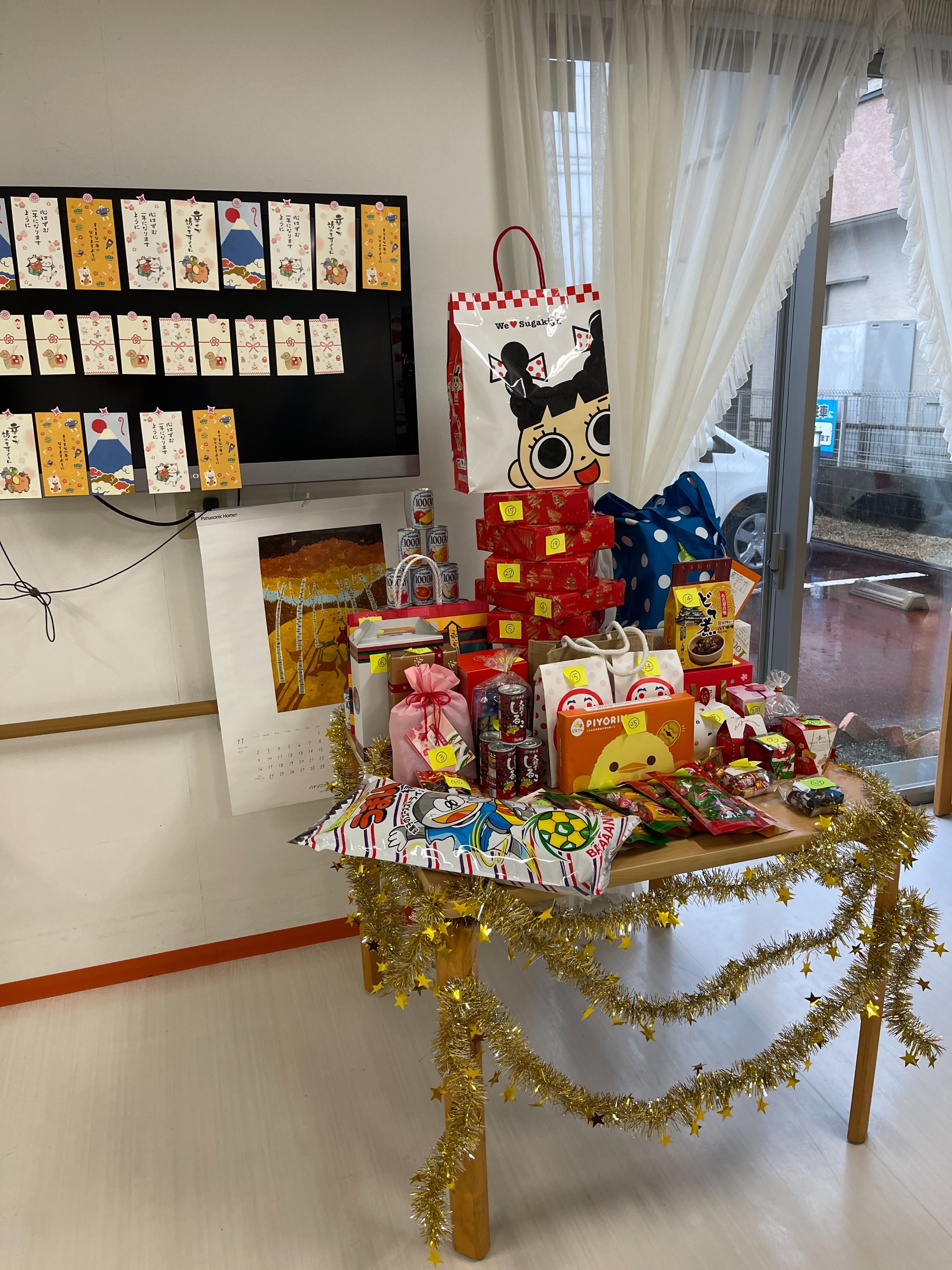 このプレゼントの山は、クリスマス会の「お楽しみくじ」の景品☆☆